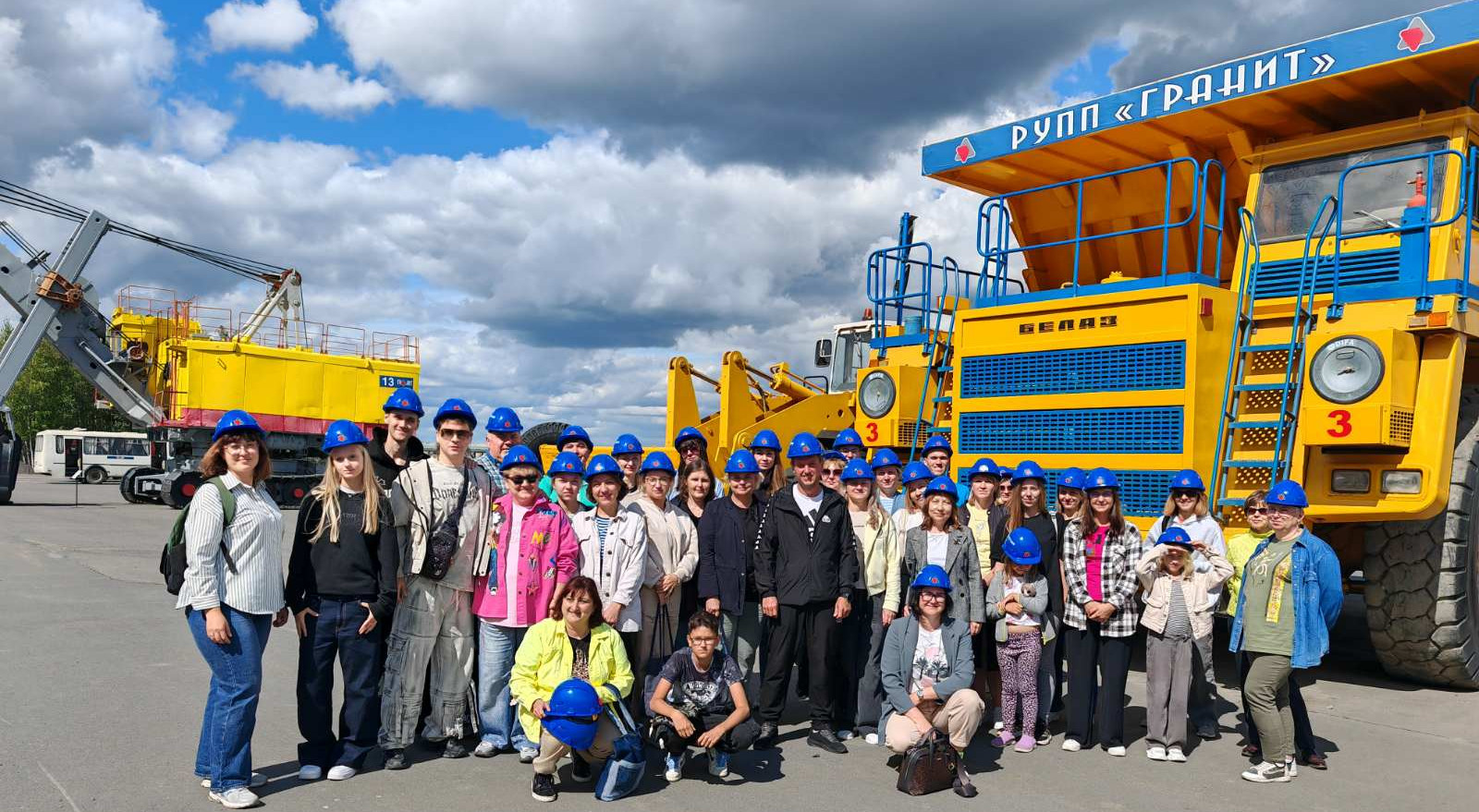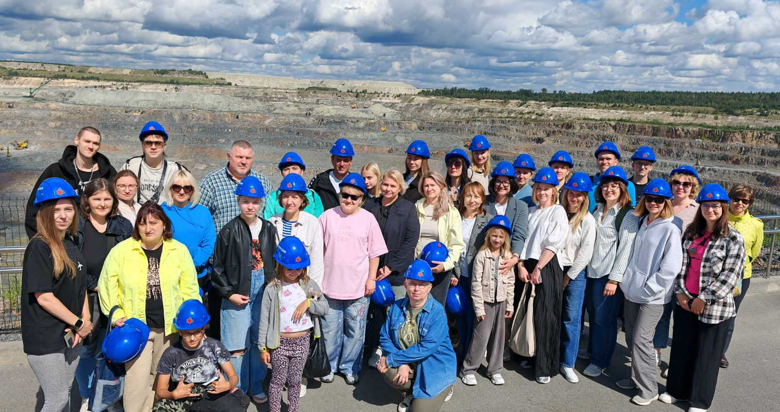 На экскурсии сотрудники смогли подняться на смотровую площадку, чтобы увидеть процесс добычи и транспортировки гранитной породы, посетить выставку техники, используемой на предприятии: буровые установки, экскаваторы и гигантские самосвалы.
